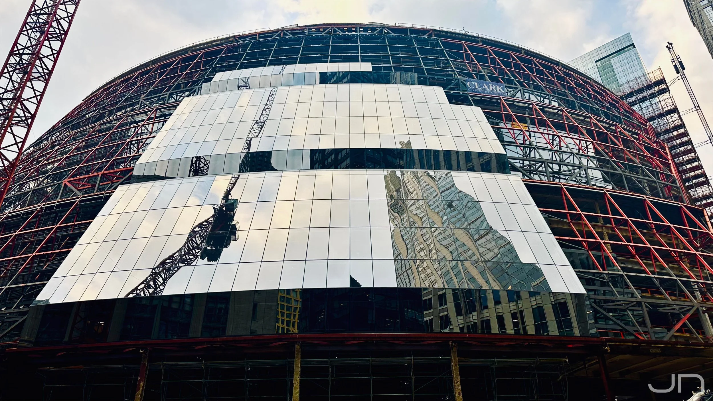 Standing outside the site today, you can literally see the building shedding its old skin. Panels of the glass façade are being carefully removed, replaced, and prepared for an upgraded envelope that will improve energy efficiency while maintaining the building’s recognizable form. The mirrored glass that once symbolized transparency and openness is giving way to a refreshed vision of the future.